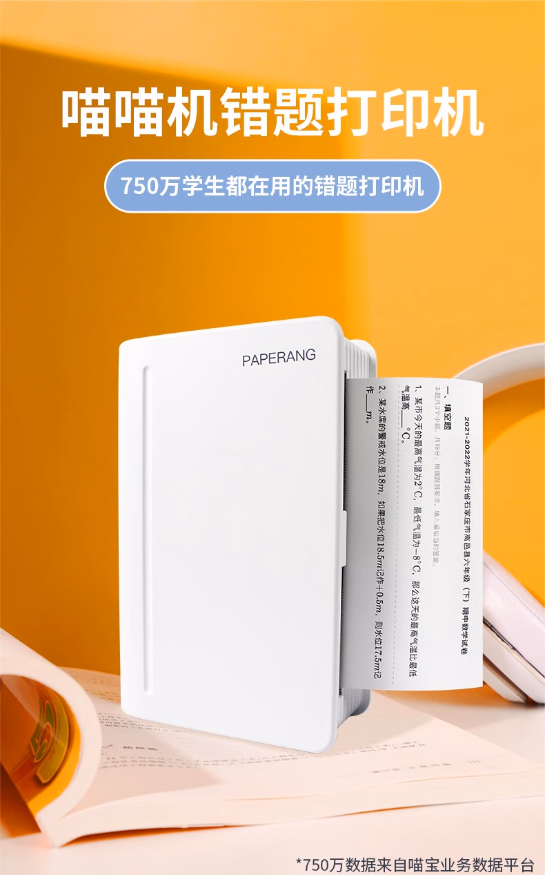 喵喵机C1S高清宽幅学生便携式错题集整理神器家用小型迷你蓝牙口袋照片错题打印机 C1S经典白 标配