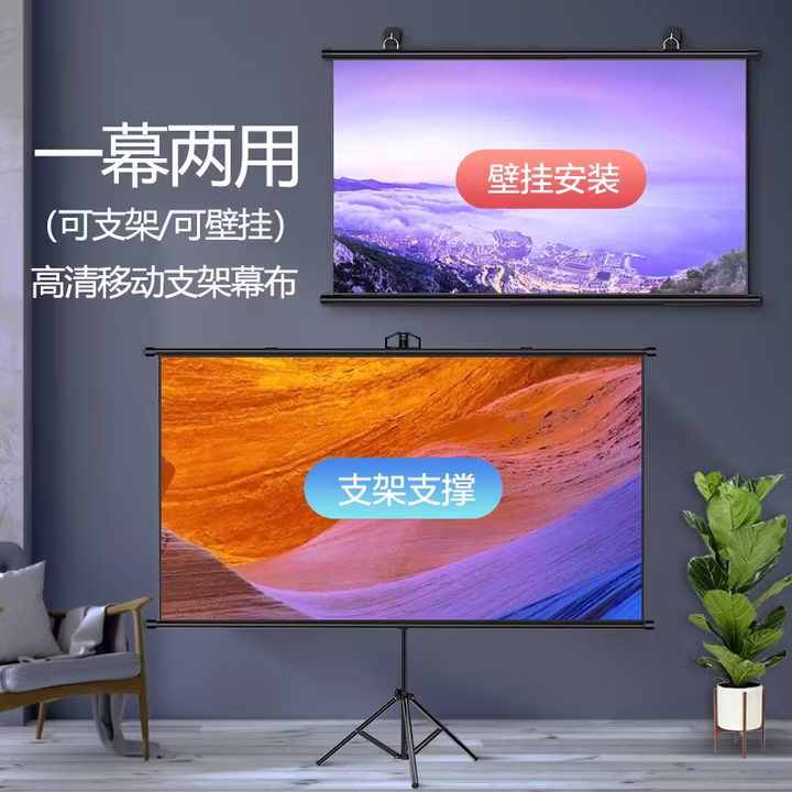 > 魅图支架幕布移动投影幕布落地家用4k高清免打孔可挂壁简易幕布办公抗光幕布户外便捷高清投影仪屏幕