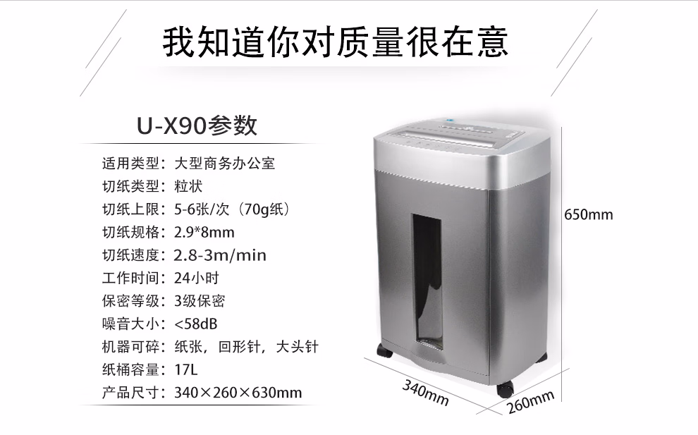 > 优玛仕 U-X90碎纸机多功能办公商用文件光盘双入口粉碎机