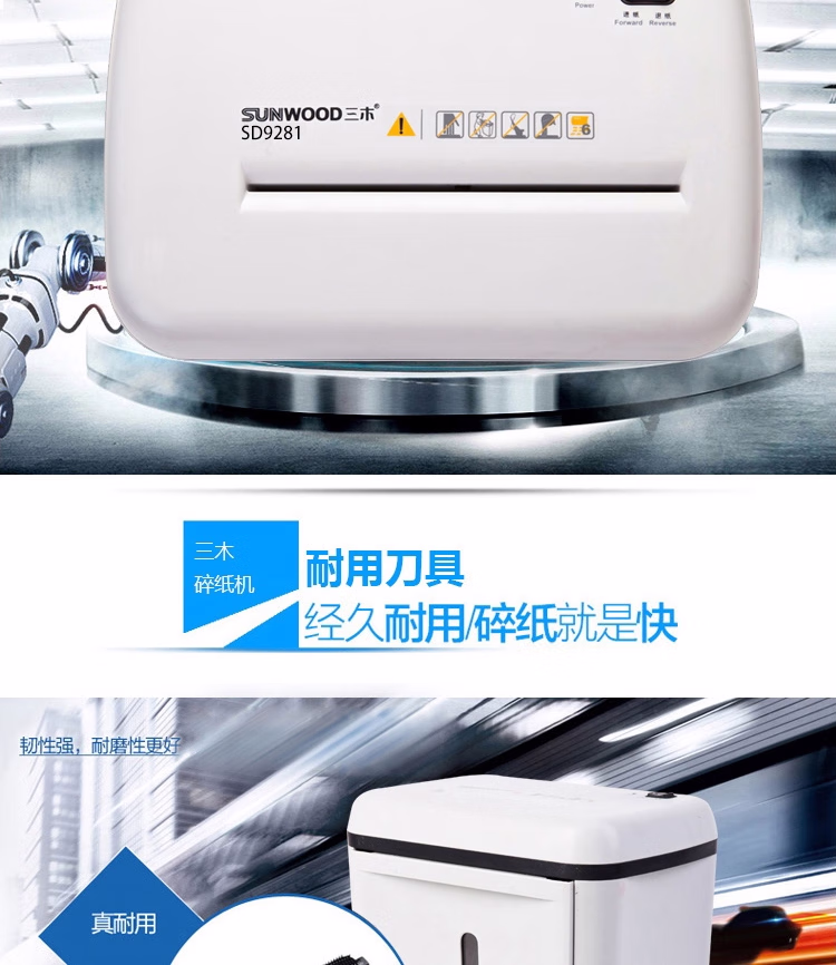 三木(SUNWOOD) SD9281碎纸机 大功率电动办公粉粹机保密静音5~6张 15L