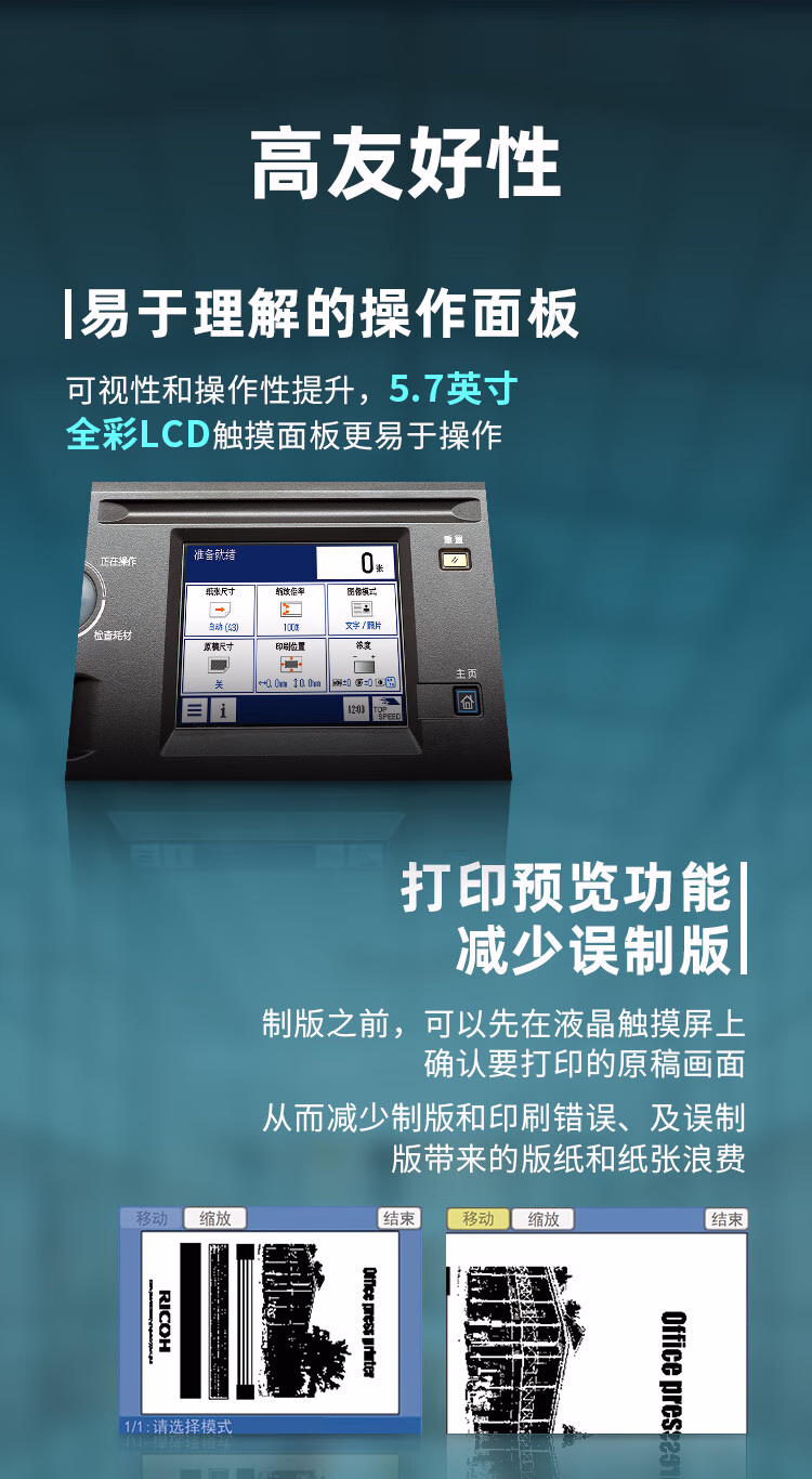 > 理光(Ricoh)基士得耶CP7401C CP7401Hc速印机一体机打印试卷学校油印机学生试卷批量印刷机 A3幅面走纸B4幅面 CP 7401HC(200页/分钟)