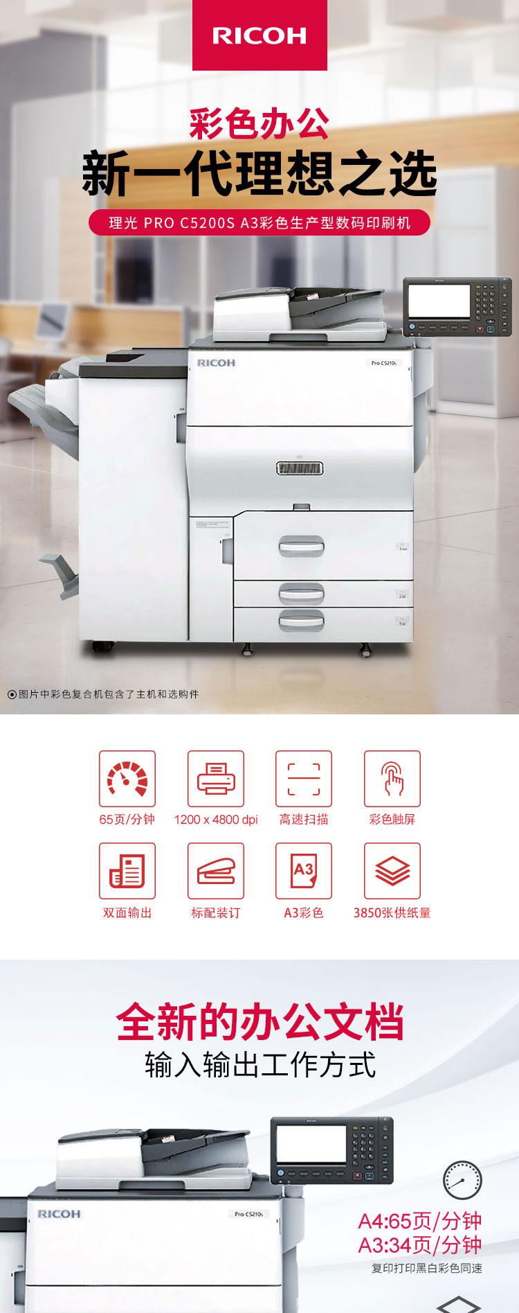 > 理光(Ricoh)PRO C5200S 彩色生产型数码印刷机 (打印/复印/扫描/小册子装订/免费上门安装/一年售后服务)