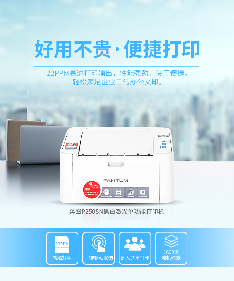 奔图(PANTUM)P2505N黑白激光打印机(A4打印 USB打印)