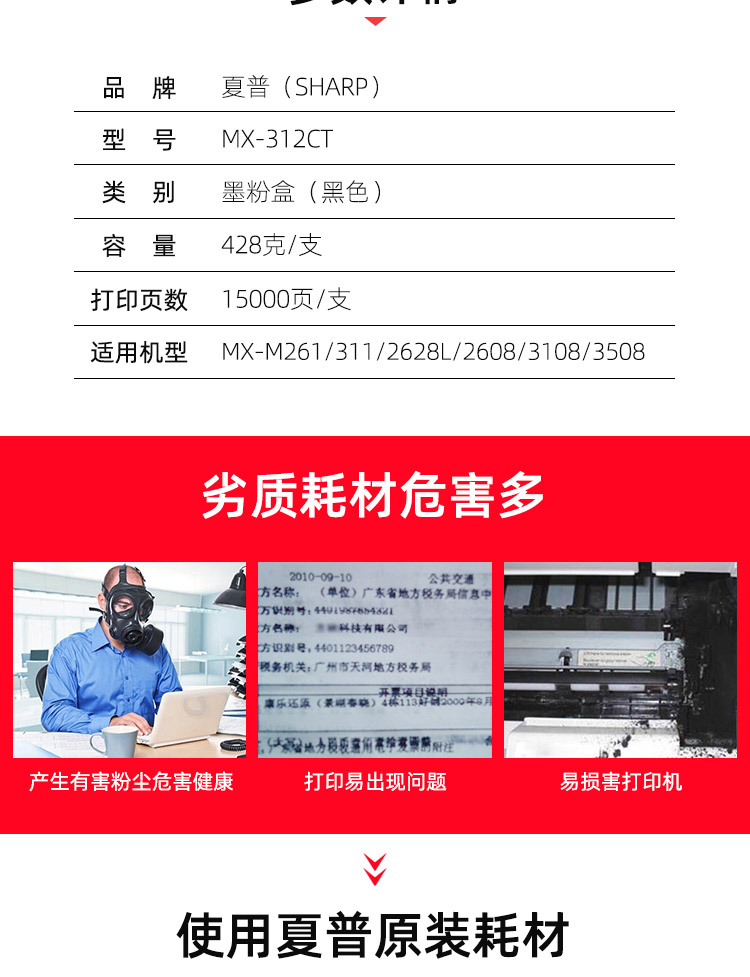 > 夏普(SHARP)MX-312CT墨粉盒 15K (适用MX-M261/311/2628L/2608/3108/3508机型)