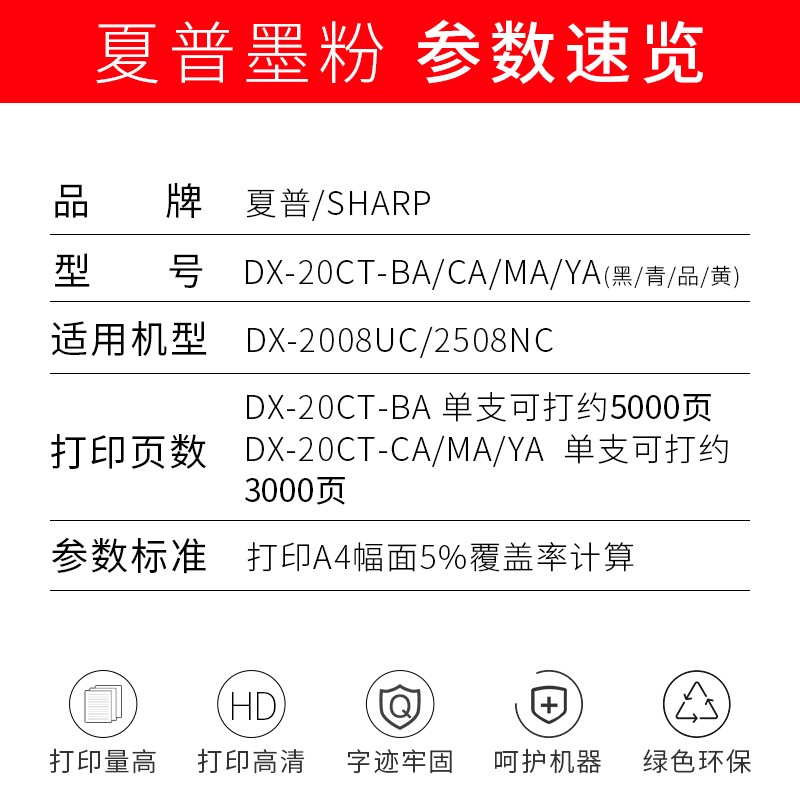 > 夏普原装DX-20CT-BA/CA/MA/YA彩色粉盒墨粉DX-2008UC/2508NC碳粉耗材 DX-20CT-MA 红色