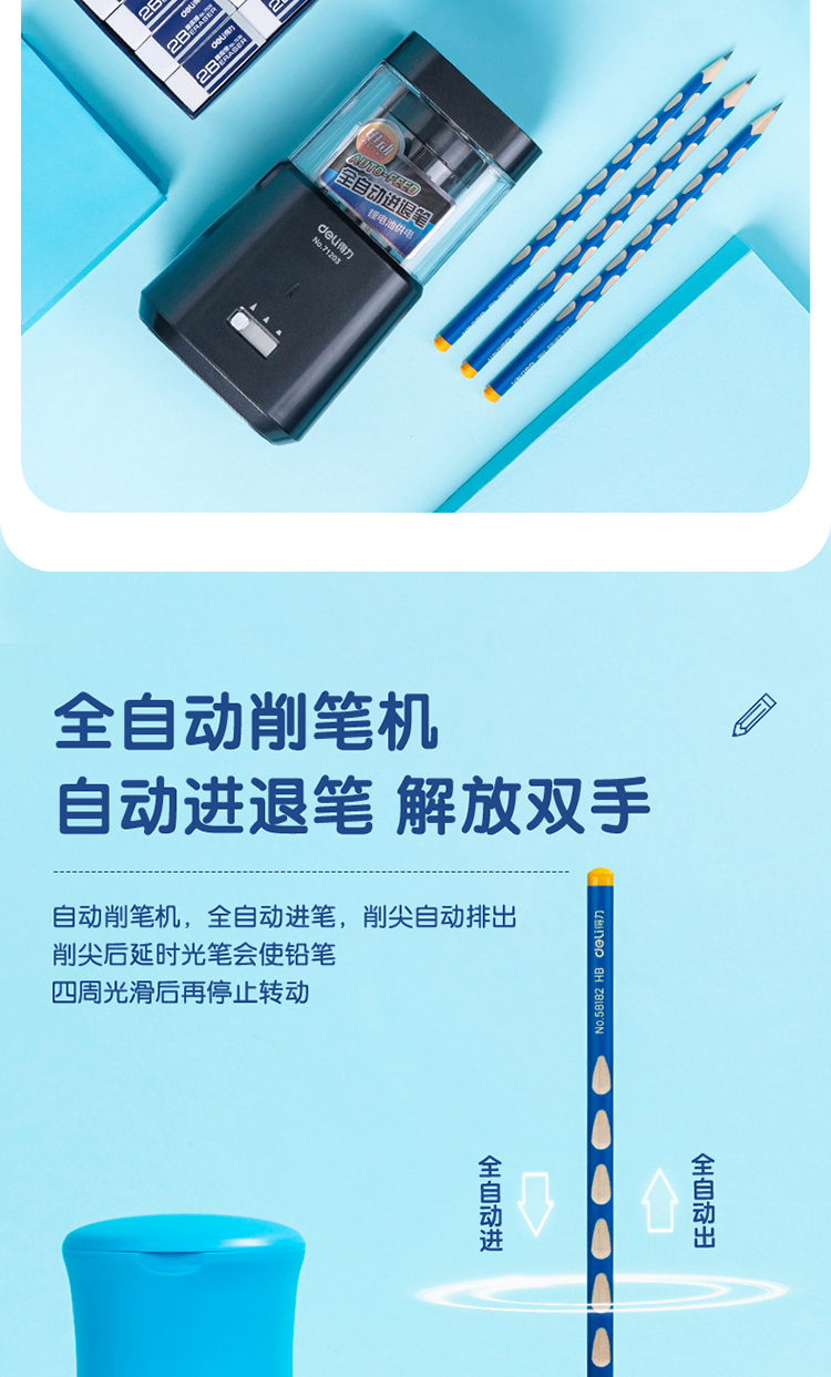 > 得力(deli)电动文具套装 锂电全自动削笔机+橡皮擦+洞洞笔