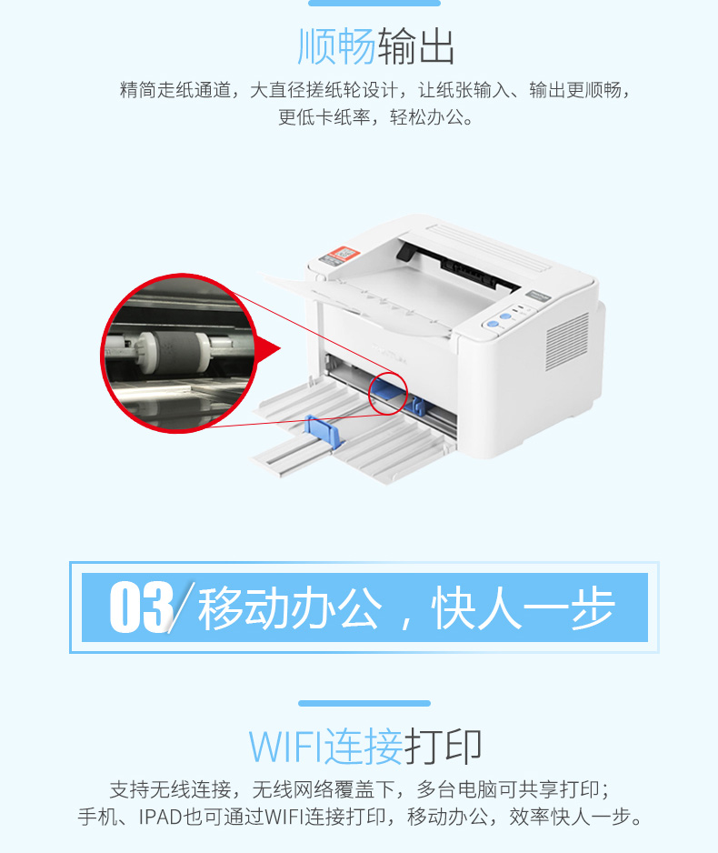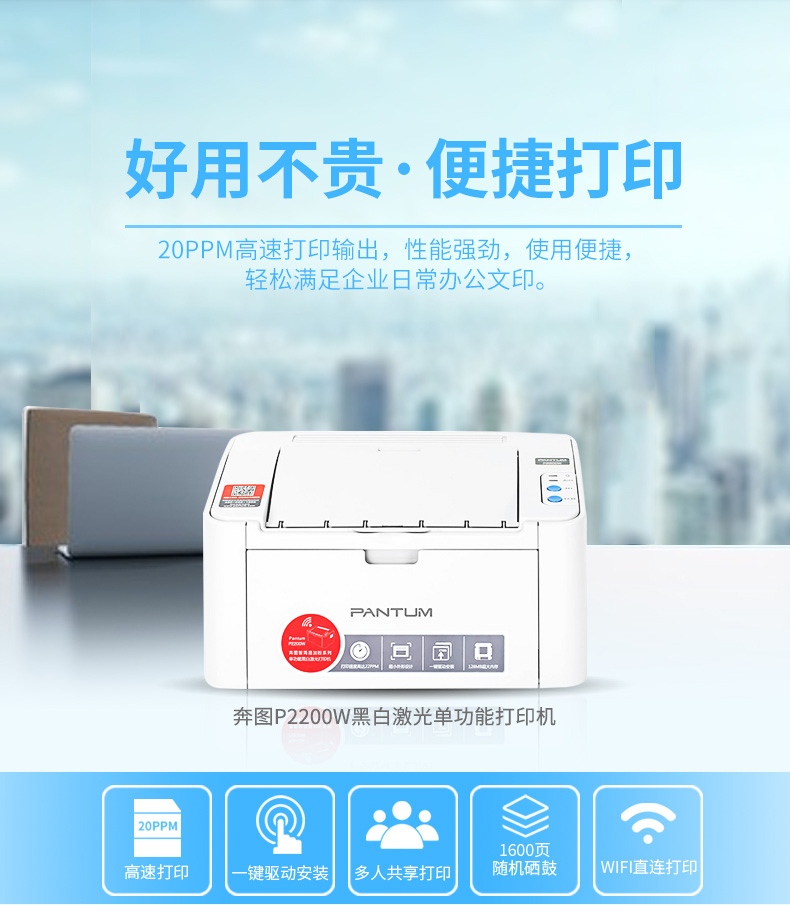 > 奔图(PANTUM)P2200W 黑白激光小型易加粉无线打印机