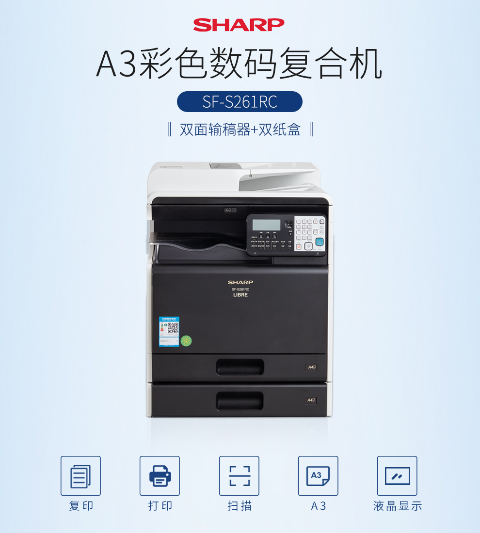 > 夏普(SHARP)SF-S261RC A3彩色激光复合机(双面输稿器 单纸盒)打印复印办公一体机