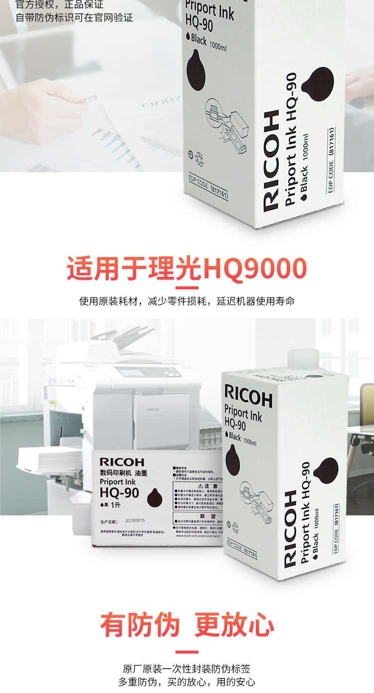 > 理光(Ricoh)HQ90(1000cc/瓶*5支)黑油墨 适用于HQ9000