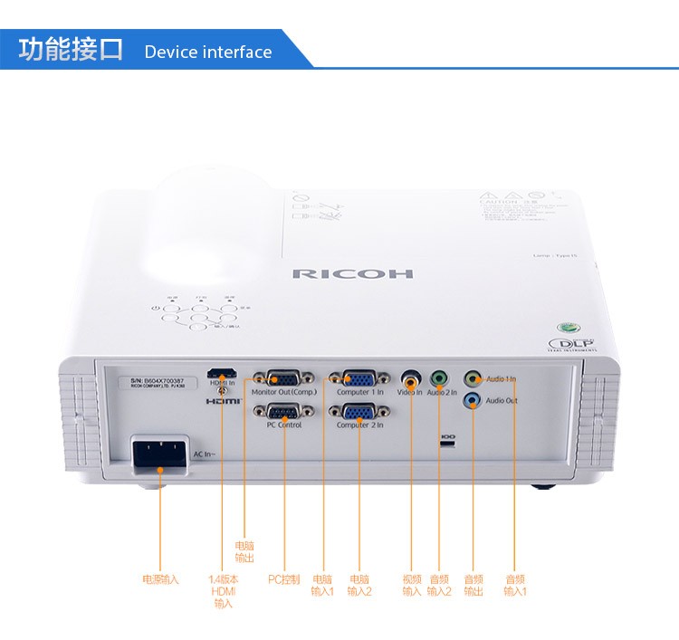 理光(RICOH) 短焦投影仪投影机家用3D标清3500流明短距大屏HDM X100ST 3600流明短焦 官方标配