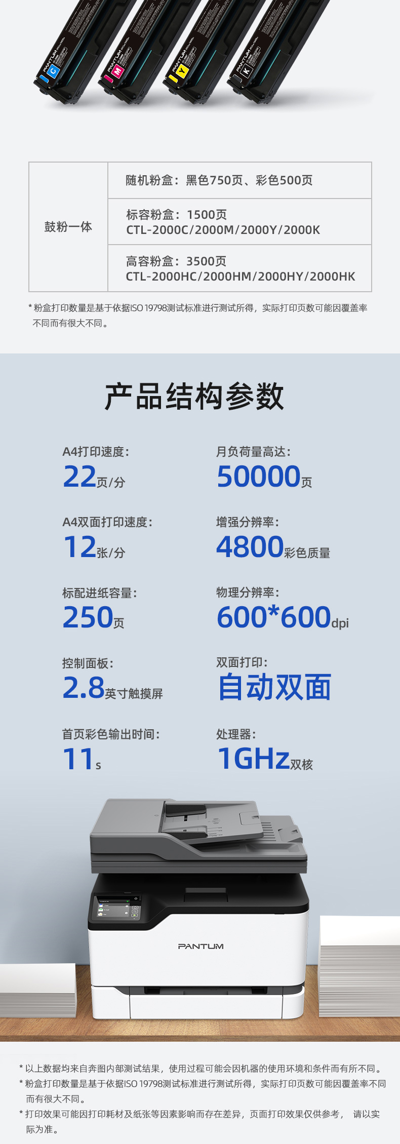 > 奔图(PANTUM)CM2200FDW 彩色激光无线多功能一体机 自动双面打印/复印/扫描