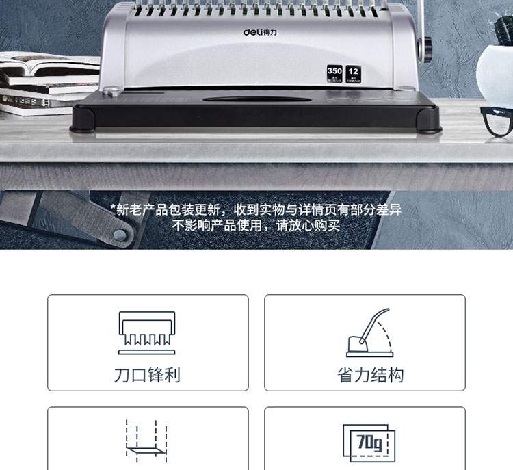 得力(deli)3870/3870N 省力型胶圈/夹条装订机 21孔文件档案标书打孔机/打孔器