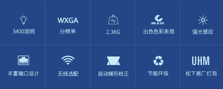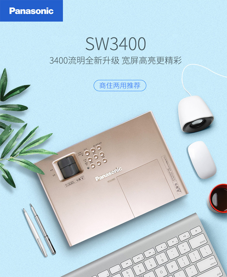 > 松下(Panasonic)PT-SW3400 投影仪办公 投影机商务会议 家用(高清宽屏 3400流明 A4尺寸 轻巧便携)