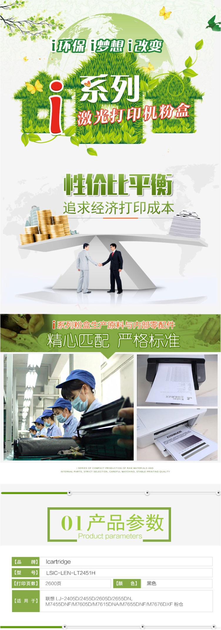 > 莱盛 i系列 LT2451H 黑色墨粉盒 适用联想 LJ-2405D/2455D/2605D 单支装