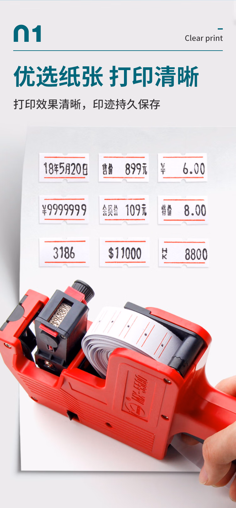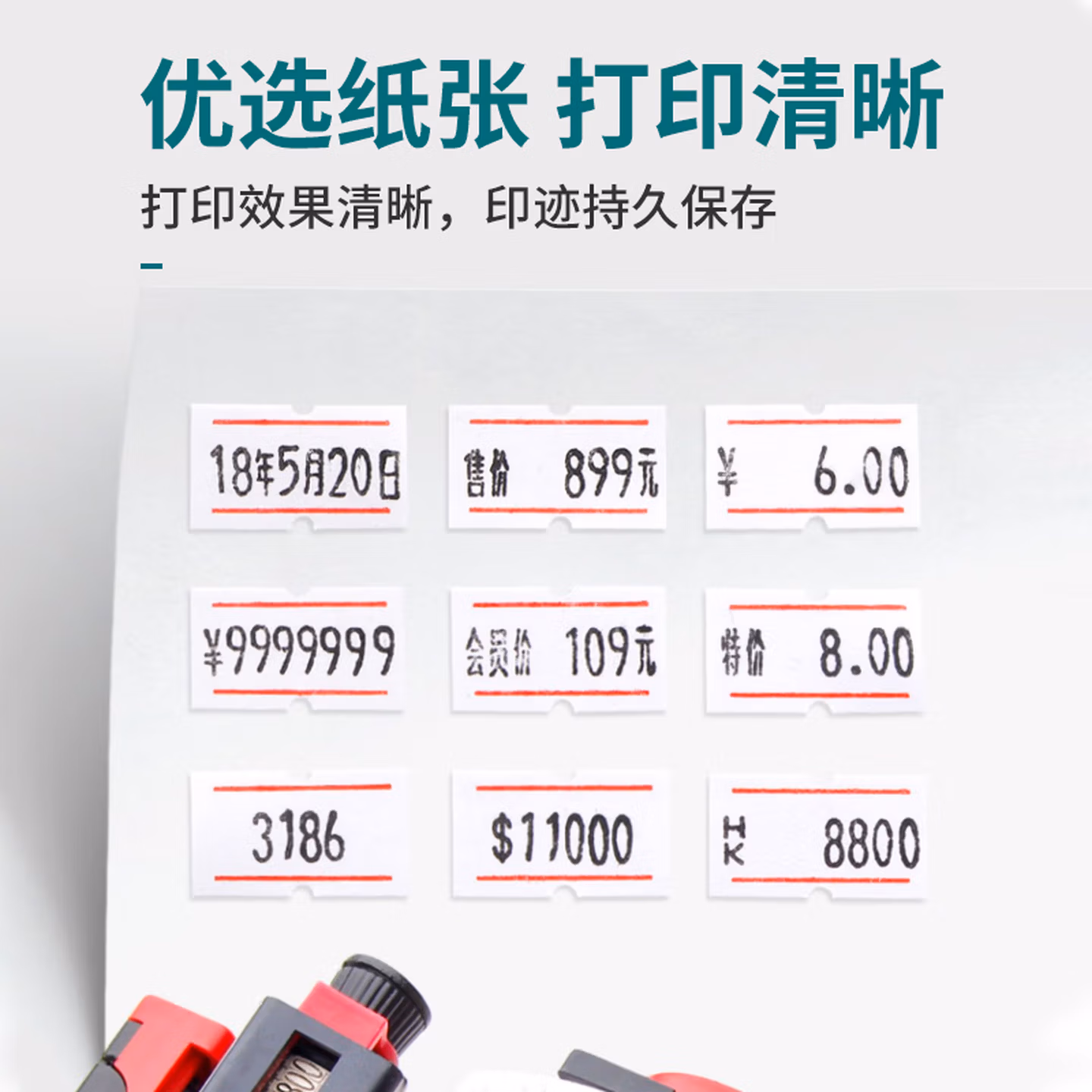 > NVV 价格标签 标价贴纸 打码机 打价纸 通用单排标价纸21.5*12mm 10卷/筒 600张/卷 BQ-J10