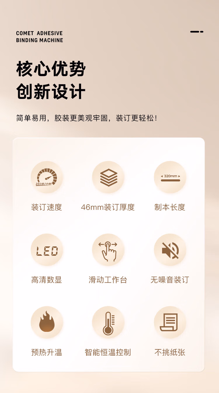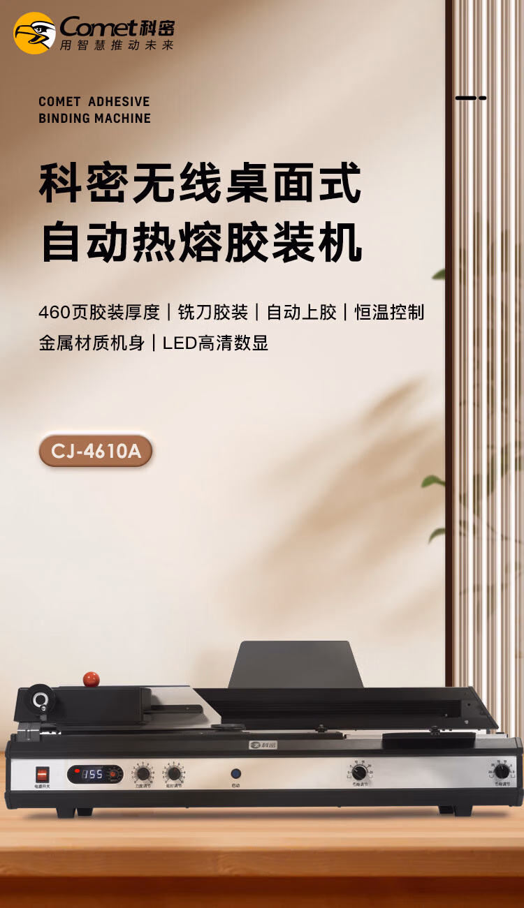 > 科密(comet)自动无线胶装机 热熔胶粒电动装订机 合同标书文件档案书籍图文制作过胶机 CJ-4610A