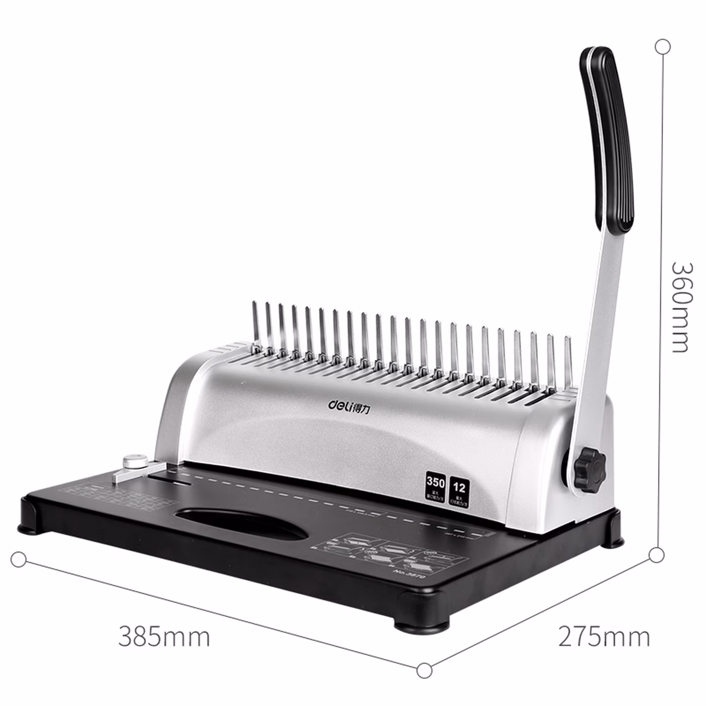 > 得力(deli)胶圈/夹条装订机 21孔文件打孔机 梳式财务装订机 3870 单次可打12张