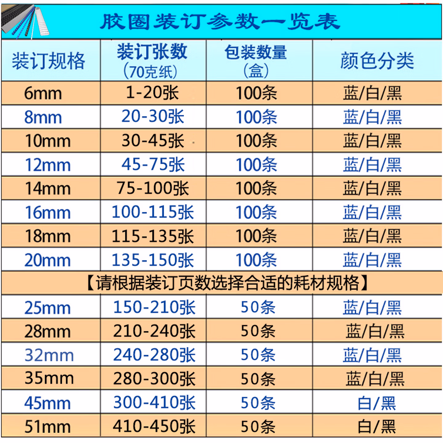 > 福越翔 装订胶圈耗材21孔易翻阅合同标书 21孔白色胶圈 【深圳速发快递】51mm椭圆形 50支
