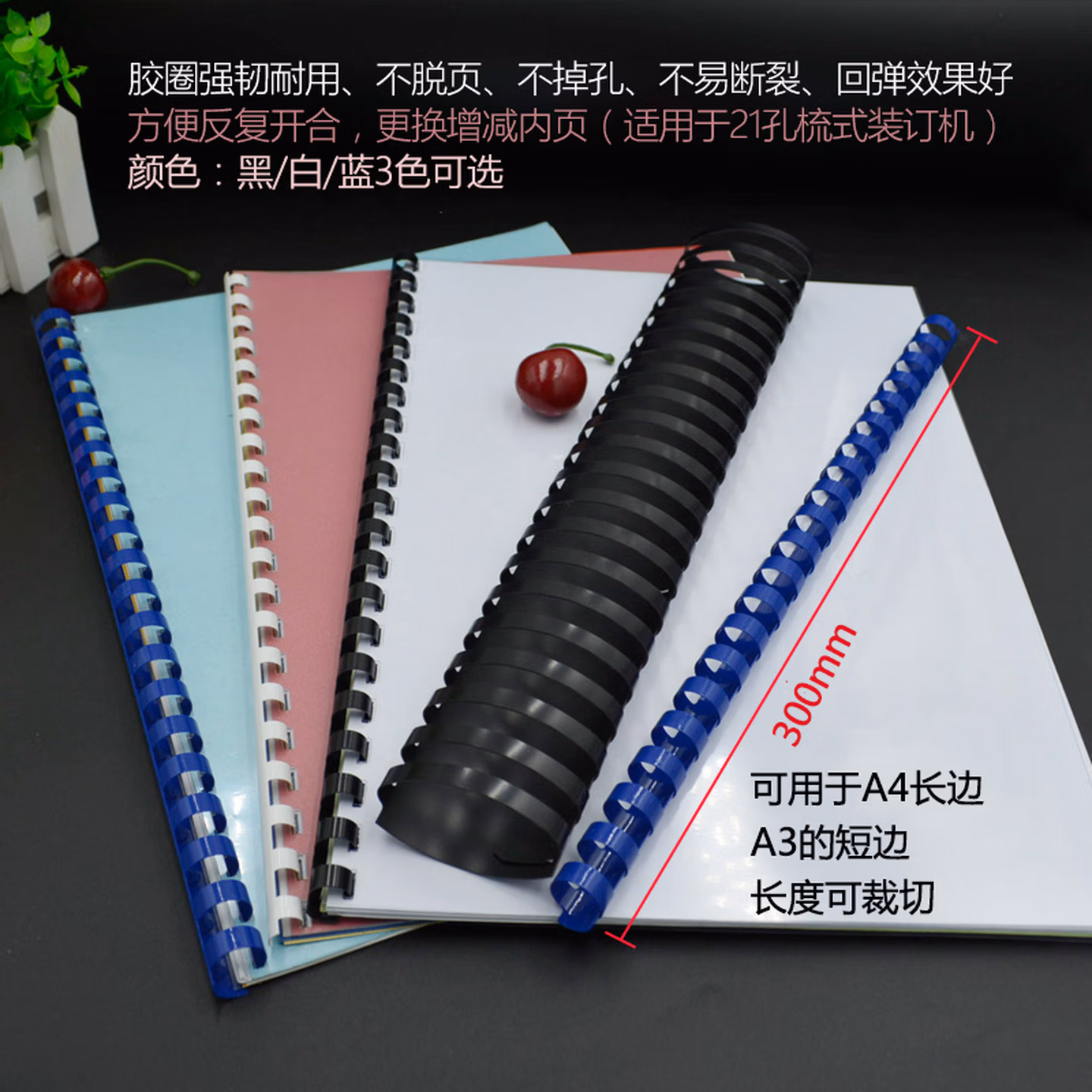 福越翔 装订胶圈耗材21孔易翻阅合同标书 21孔白色胶圈 【深圳速发快递】51mm椭圆形 50支