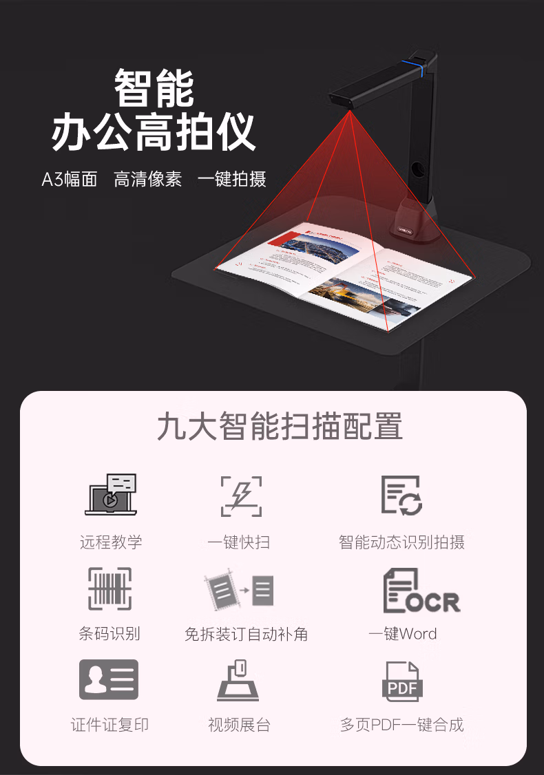 维山K365高拍仪 3600万像素A3大幅面智能书籍成册扫描仪 高清高速拍摄仪 商务办公纸张文件票据 维山K365高拍仪 3600万像素 高拍仪