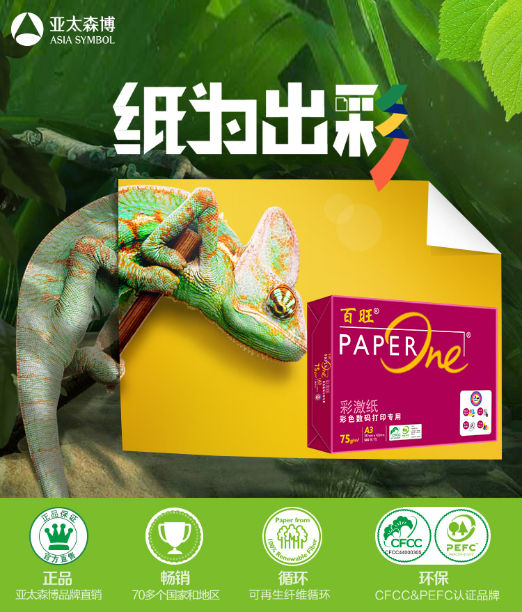 > 亚太森博 红百旺A3 高档彩激复印纸 75g 5包/箱 500张/包 J