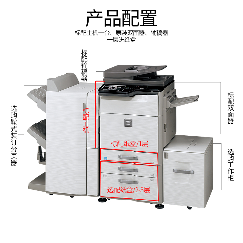 > 夏普(SHARP) SF-S361N/S461N激光复合机A3打印机多功能一体机彩色扫描 S461N(网络打印、双面复印、批量扫描) 双层纸盒(DE12落地式)