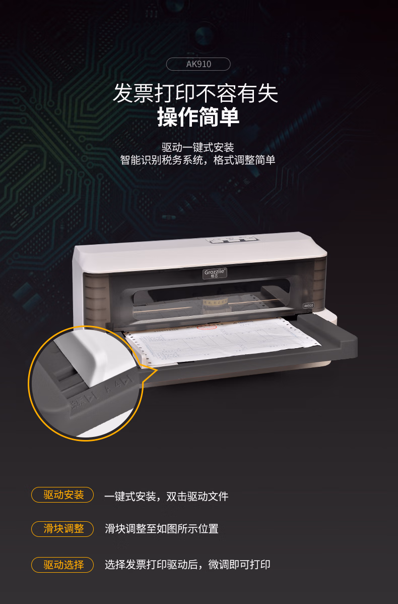 > 格志(Grozziie)AK910针式打印机 82列机营改增税控1+5联发票打印机票据电子发票发货出库单130字符每秒