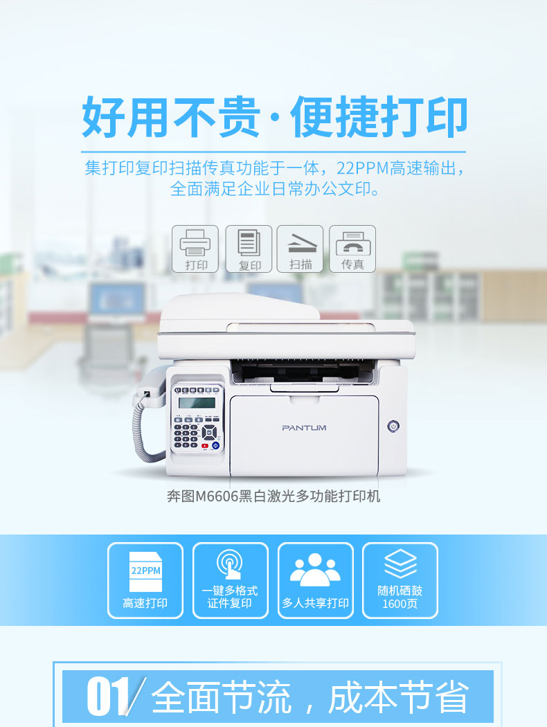 > 奔图 PANTUM M6606 A4黑白激光多功能一体机 (打印复印扫描传真)
