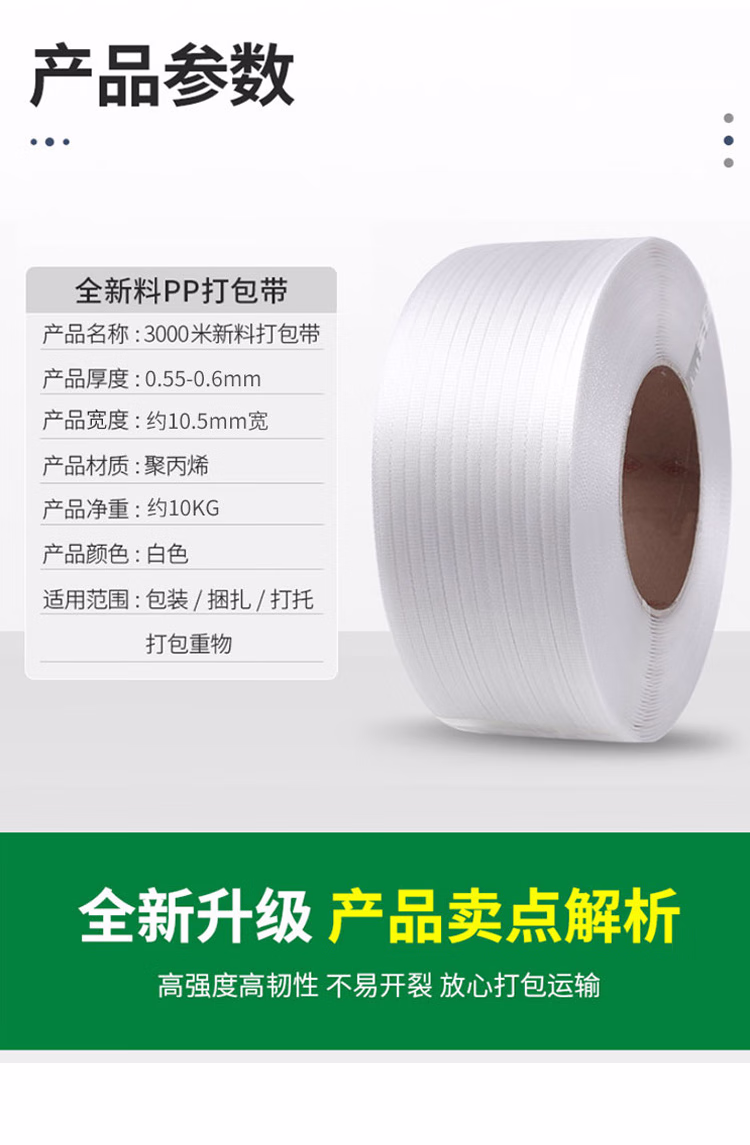 > 海斯迪克 透明白色包装带 捆扎环保打包带 3000米捆绑带手动固定带 H-247
