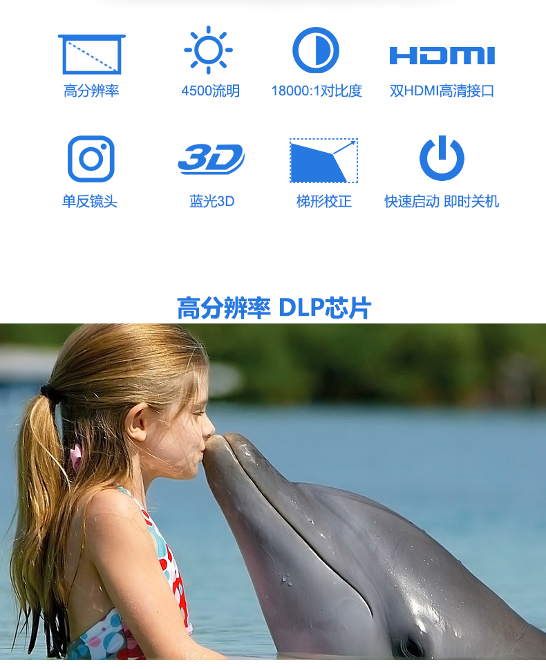 > 理光(RICOH)投影仪便携高清3D家用办公 HX518 5200流明新光源 官方标配