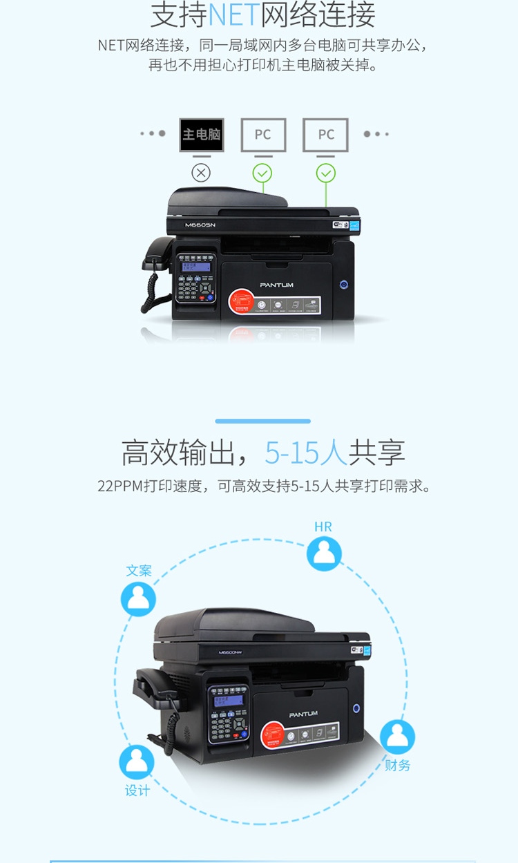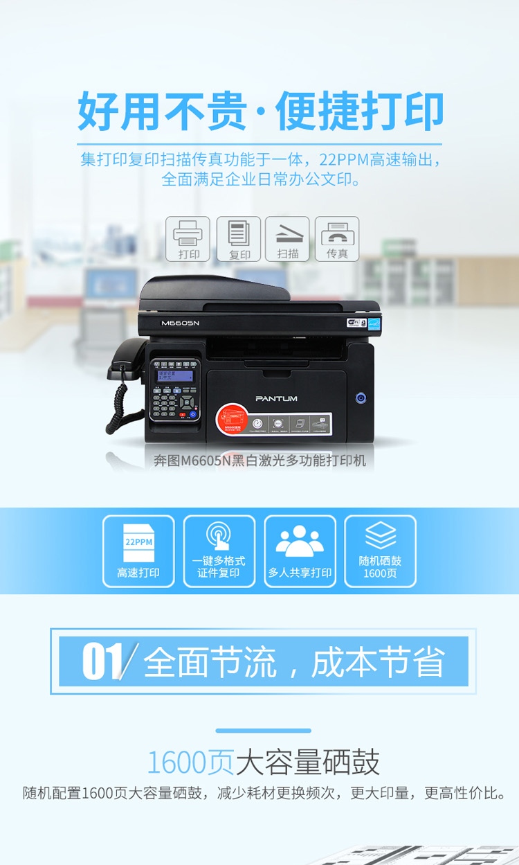 > 奔图(Pantum) M6605N A4黑白激光多功能一体机?(标配)(打印 复印 扫描 传真)