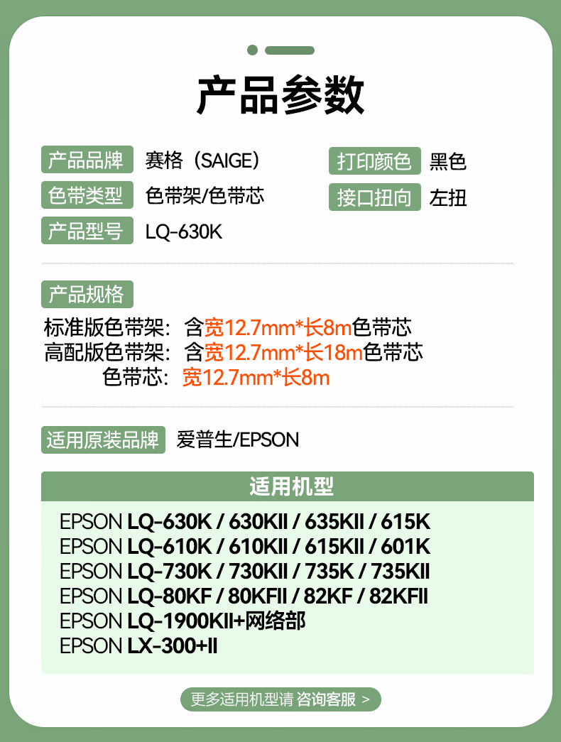 > 赛格LQ630K色带适用爱普生LQ-635K 730K 735K 610K 80KF LQ615K 630K LQ610KII 615KII针式打印机色带 【爆款】色带架 3支装(加长版含18M色带芯)