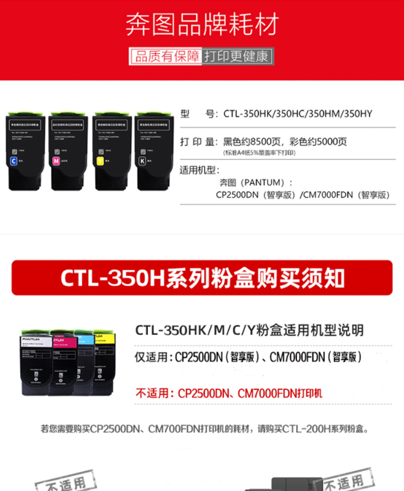 > 奔图(PANTUM)CTL-350HY 黄色粉盒 适用于(CP2500DN(智享版)/CM7000FDN(智享版))