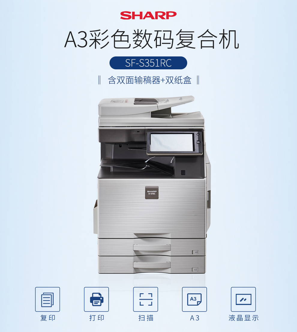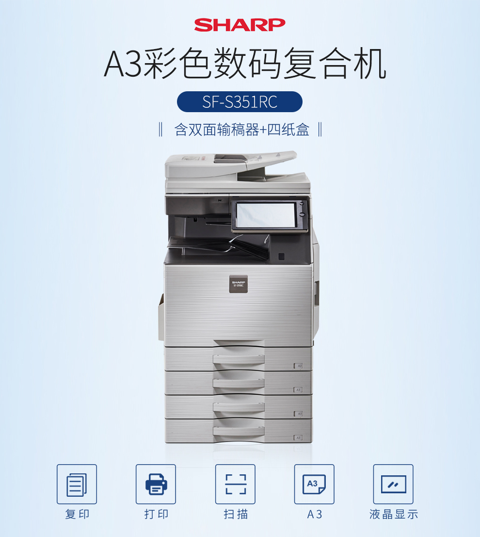 夏普(SHARP)SF-S351RC 彩色数码复合机(标配双面输稿器 单纸盒)A3多功能一体机 免费安装售后