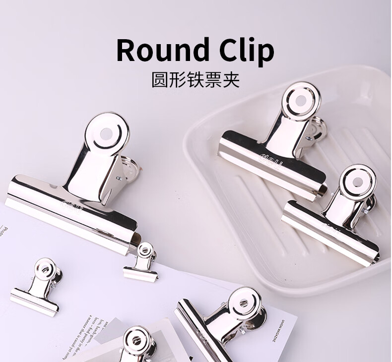 > 得力(deli)圆形铁票夹 山形铁票夹金属夹 防锈票夹袋装 办公用品 圆形铁票夹19mm袋装(6只/包)9526