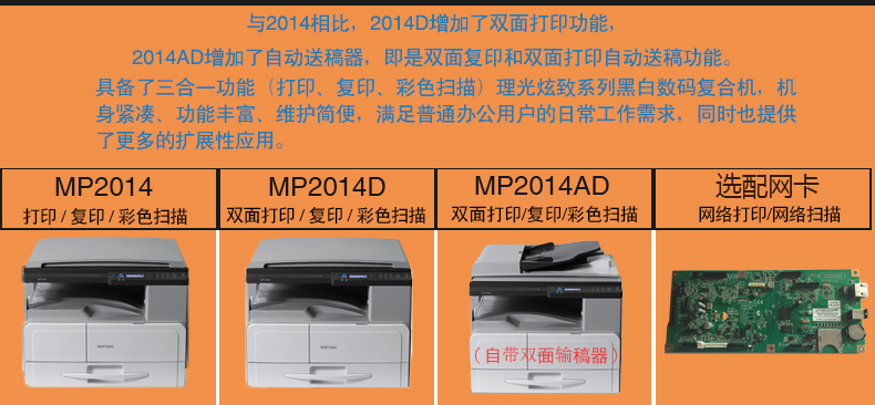> 理光(Ricoh)MP2014/D/ADN黑白激光A3复印机一体机A3A4复合机复印机打印办公扫描 MP2014 官方标配