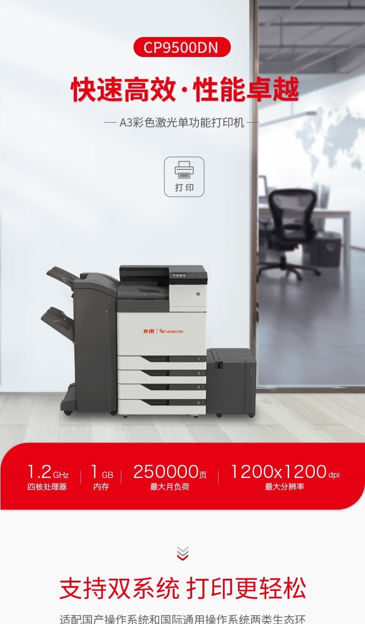 > 奔图(PANTUM)CP9500DN A3彩色激光单功能打印机/高效打印/智能快捷/支持双系统K