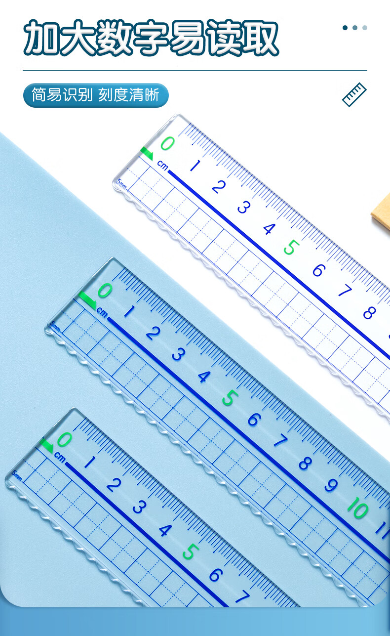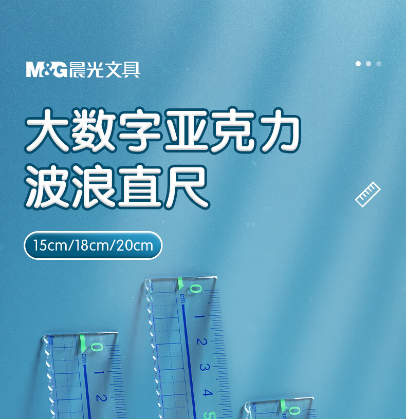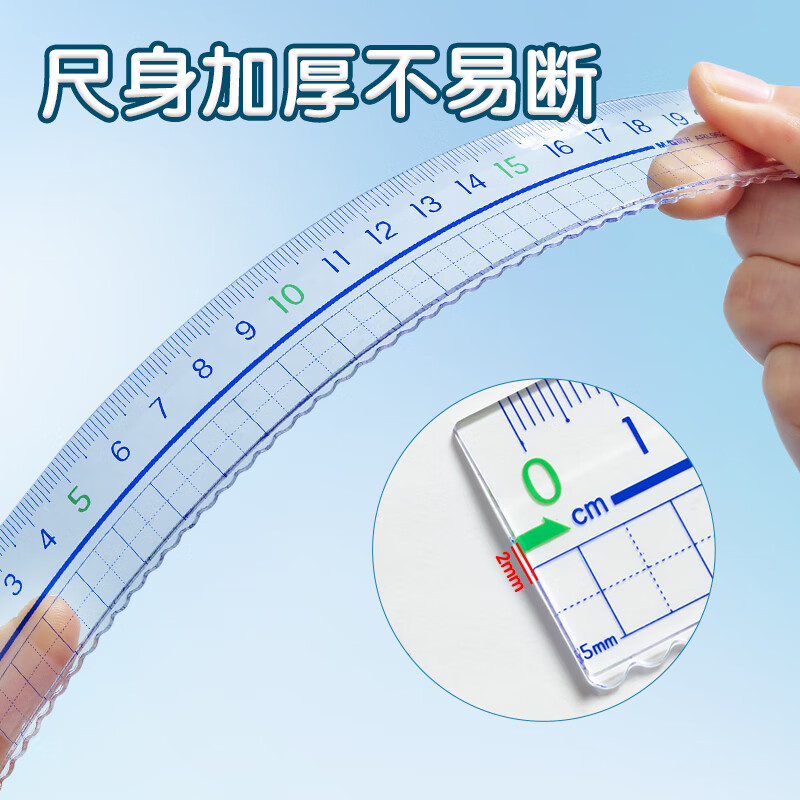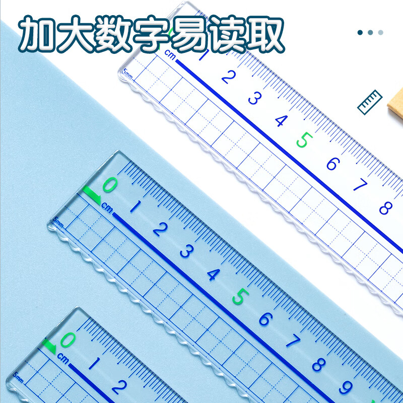 > 晨光(M&G)文具20cm波浪边学生直尺 加厚网格尺子 亚克力可视大数字刻度 考试测量绘图学习办公用品ARL96223中高考专用