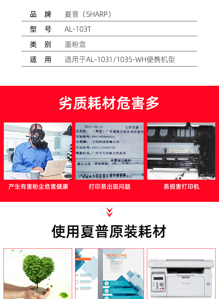 > 夏普(SHARP)AL-103T 黑色墨粉盒原装耗材(适用于AL-1031/1035-WH便携机型)约2000页