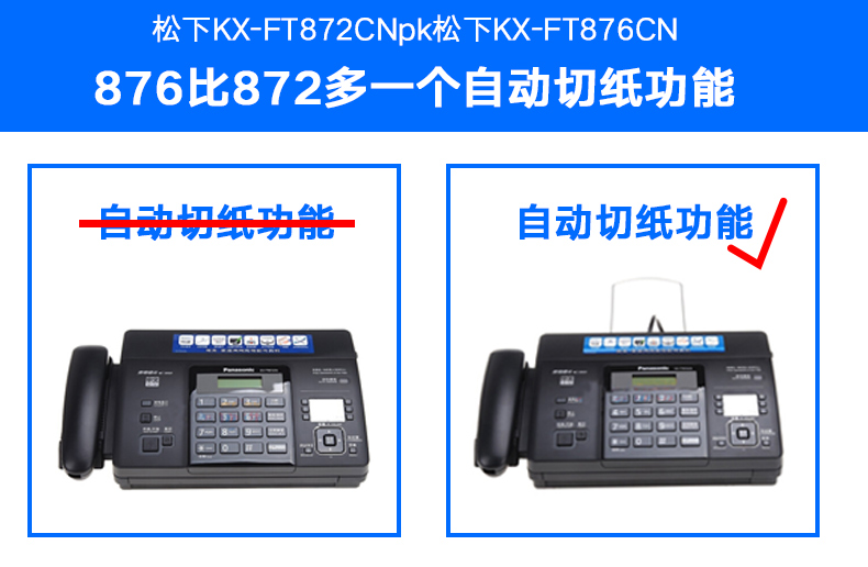 > 松下传真机KX-FT872CN 热敏传真机中文显示传真电话复印一体机 国产热敏纸