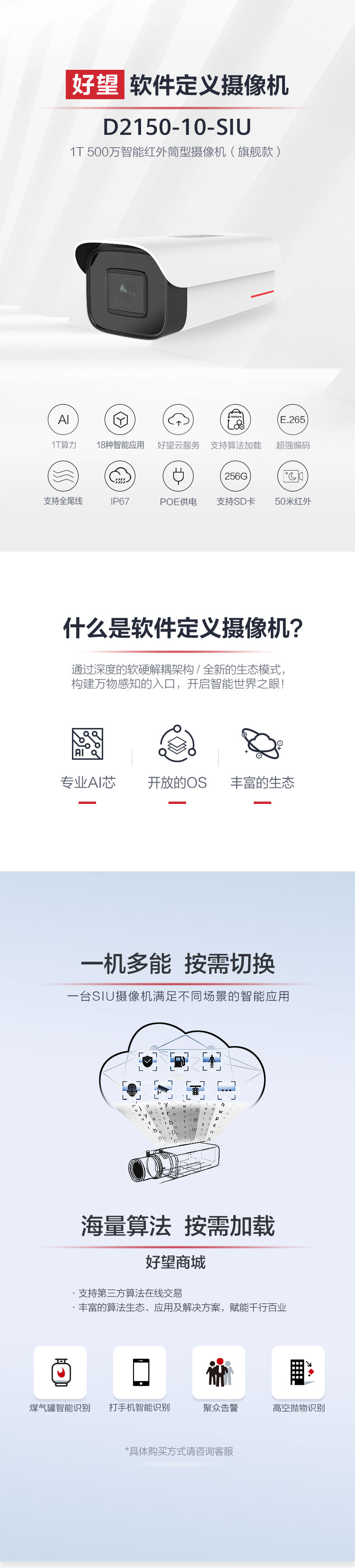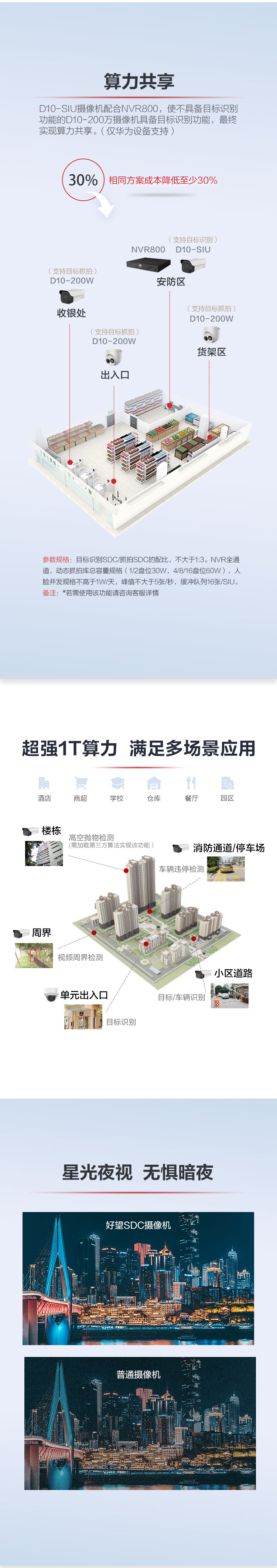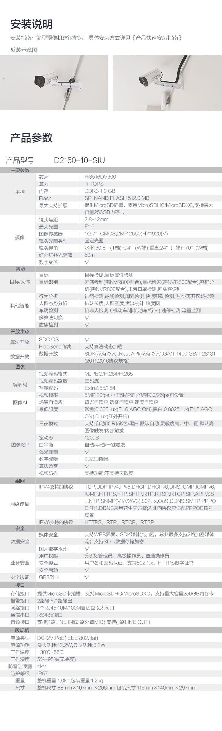 > 华为安防监控摄像头1T算力500万高清POE供电智能红外夜视筒型室外防尘防水目标识别适用工业商超D2150-10-SIU