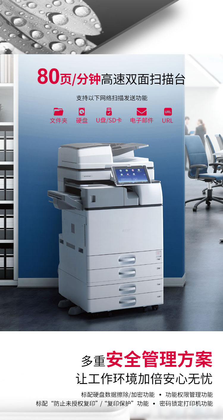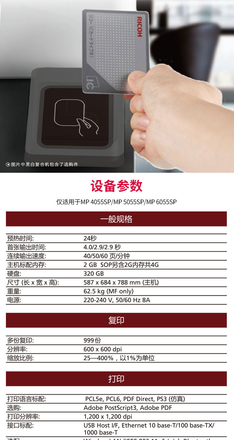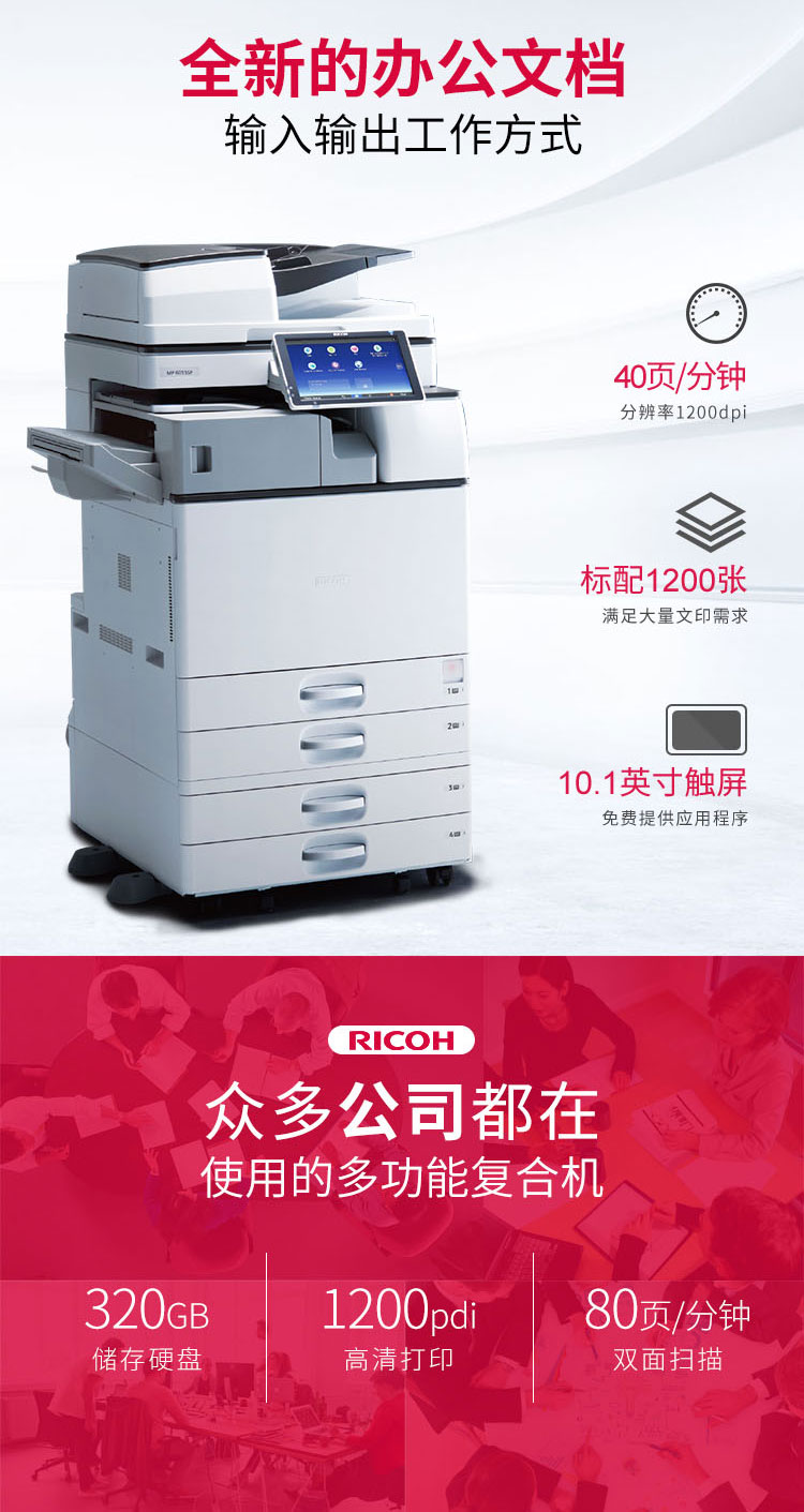 > 理光(Ricoh)MP 4055SP A3黑白商用数码复合机 标配含双面输稿器 双纸盒(免费上门安装 售后)