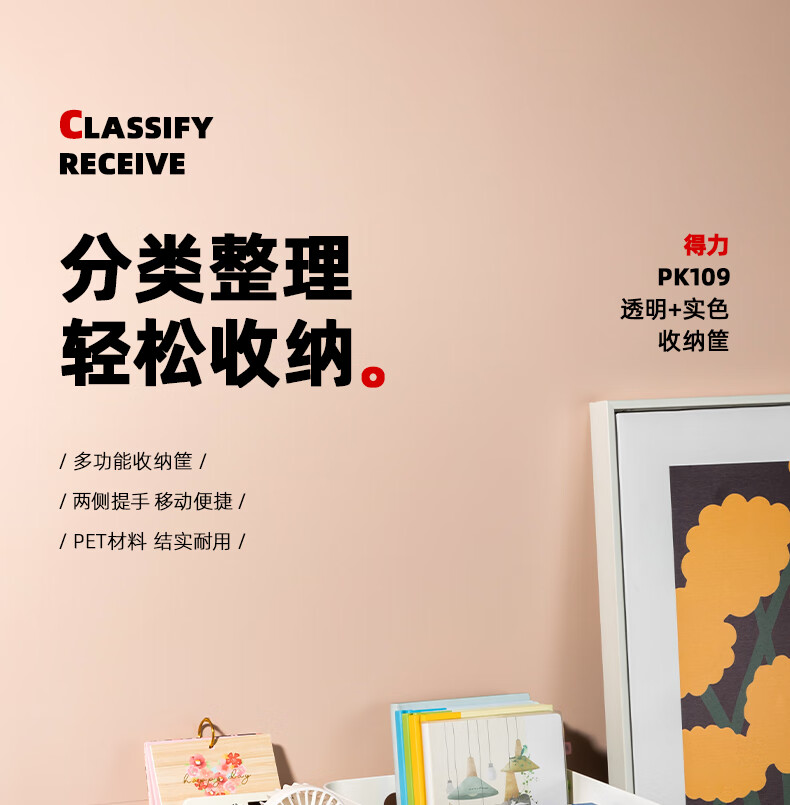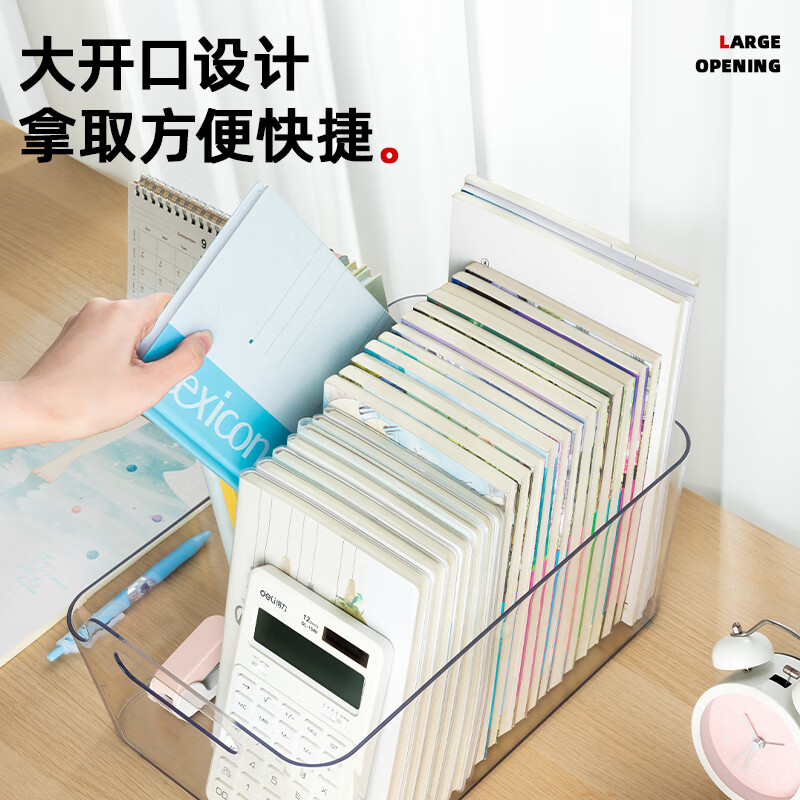 > 得力透明书立书架大容量加厚亚克力桌面书本整理收纳盒儿童学生宿舍阅读书桌置物架书立架文件框 白色PK109