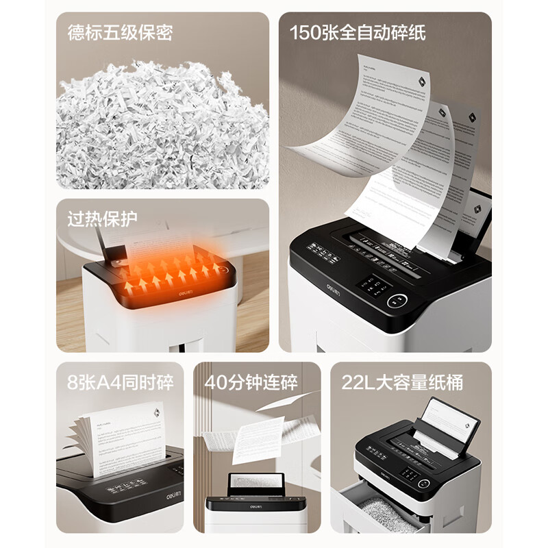 > 得力全自动碎纸机 5级保密 旗舰双粉碎口 商用家用办公大型碎纸机(150张自动碎 40分钟连续碎纸)14500