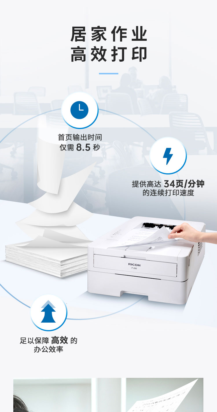 > 理光(Ricoh)P 200 A4黑白激光双面打印机 家庭商务办公