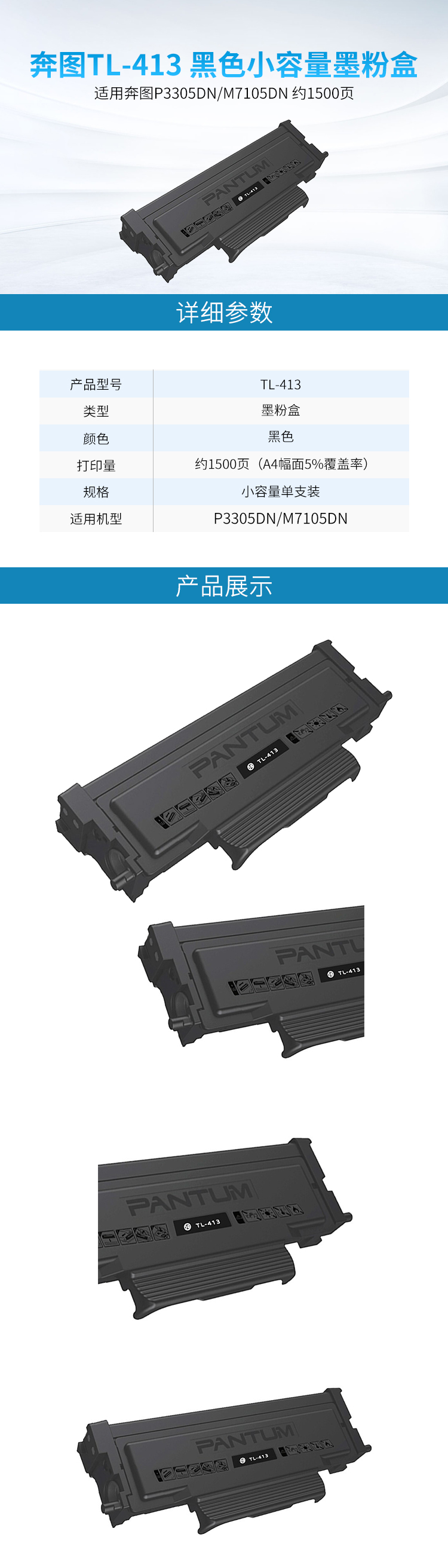 奔图(PANTUM)TL-413 墨粉盒 黑色小容量单只装 适用奔图P3305DN/M7105DN 约1500页
