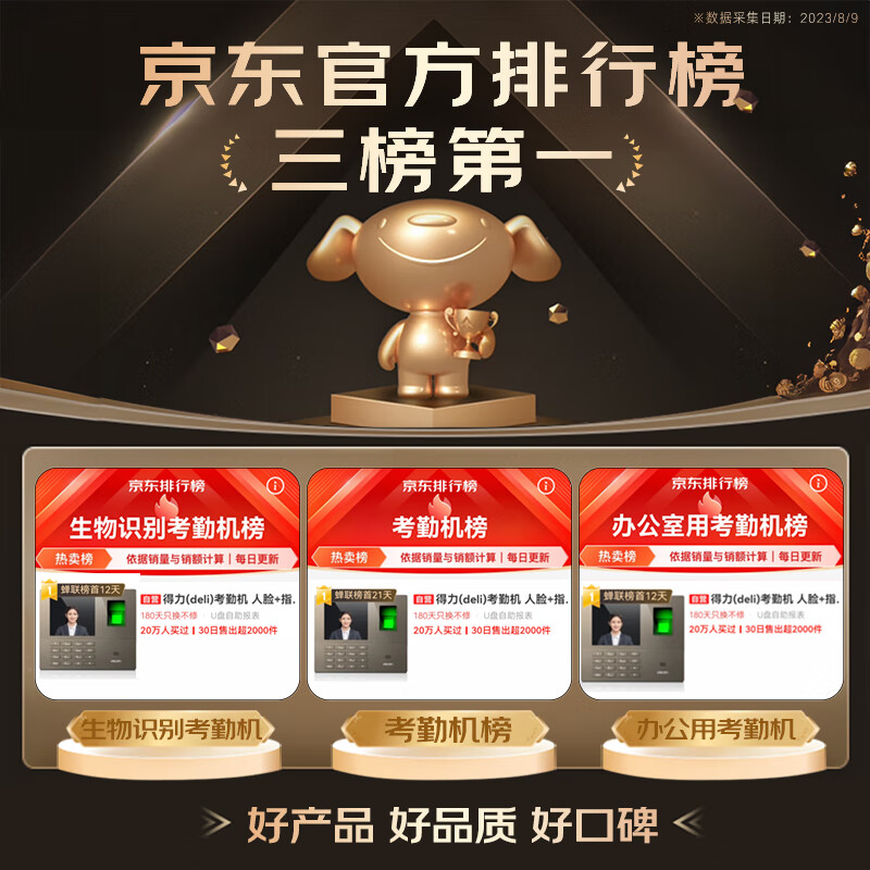> 得力考勤机 打卡机人脸+指纹 快速打卡考勤机 无需网络 设置简单 自动生成报表 销额销量双冠王33800