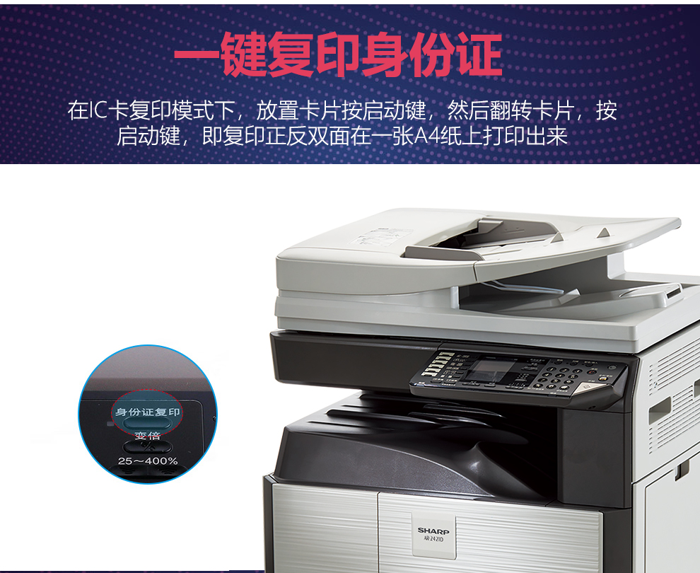 夏普(SHARP)AR-2421/2221/2348黑白数码复合机 复印机 多功能复印打印扫描一体机 2421X主机 【单张单面复印.扫描.打印】