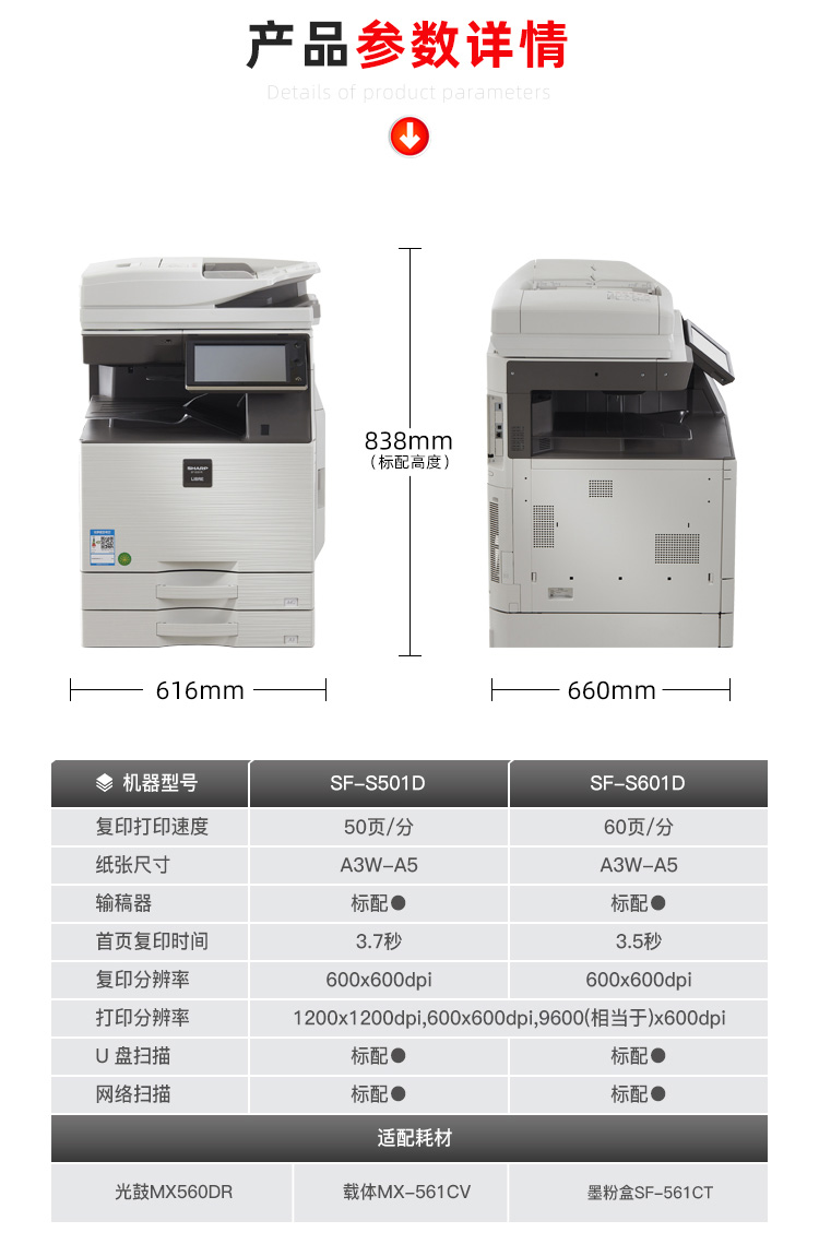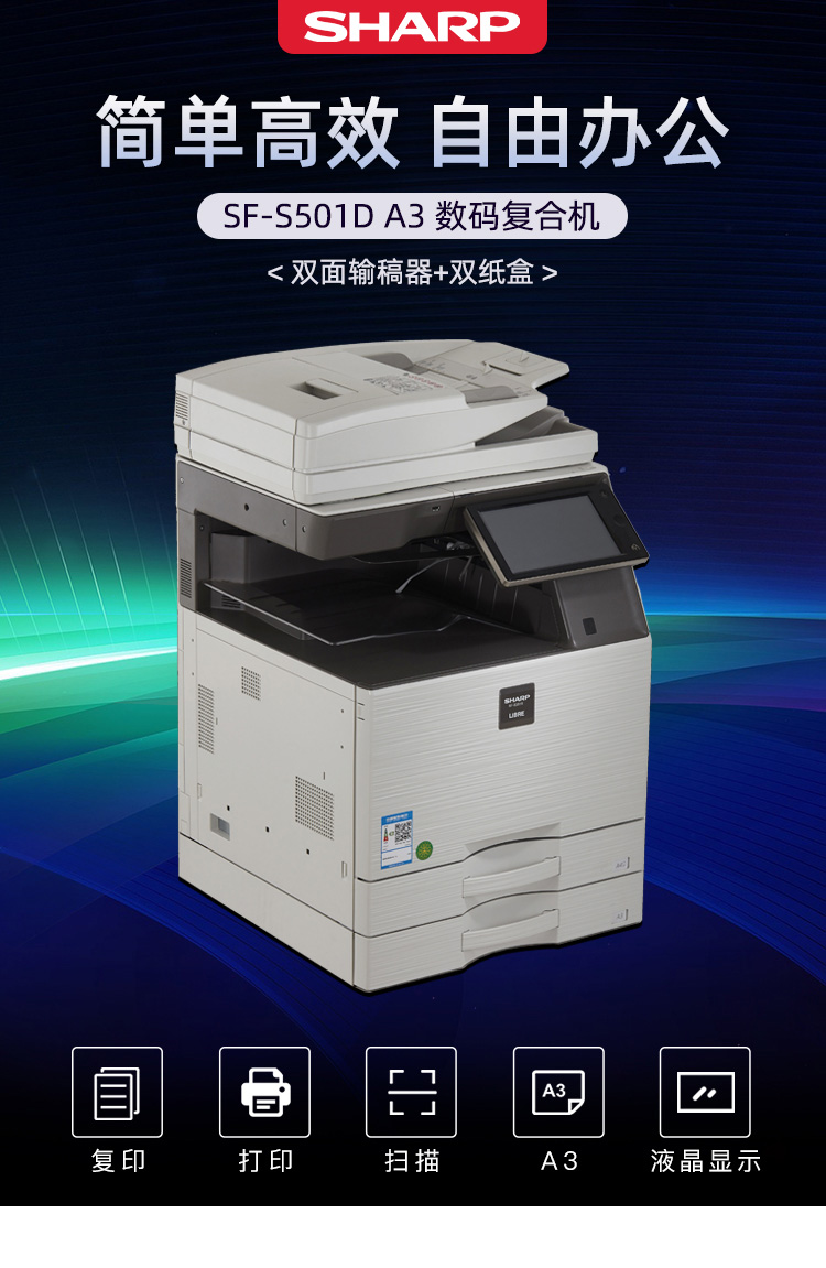 > 夏普(SHARP)SF-S501D A3黑白数码复合机(双面自动输稿器 双纸盒)数码复印机一体机 免费安装售后