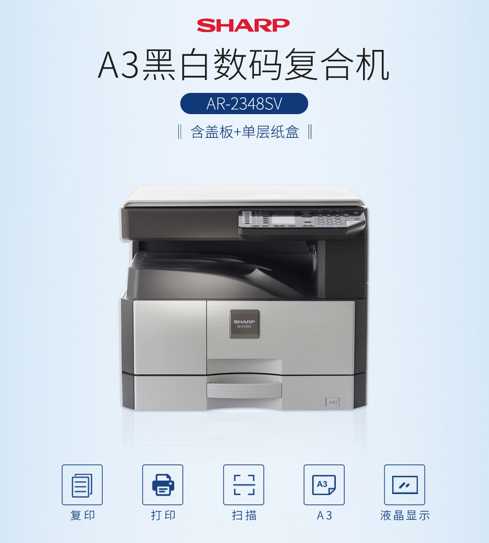 > 夏普(SHARP)AR-2348SV 复印机 A3黑白数码复合机 多功能打印机一体机(含盖板 单纸盒)免费上门安装